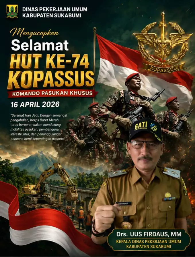 Dinas Pekerjaan Umum Kabupaten Sukabumi Mengucapkan Selamat HUT Ke-74 KOPASSUS